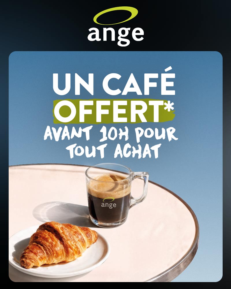 Rendez-vous dans vos Boulangeries Ange pour savourer votre café offert pour tout achat, jusqu'à 10h.